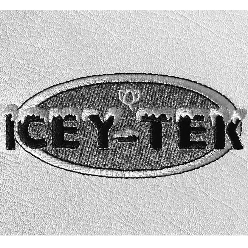 Tous les coussins sont blancs avec un passepoil noir sur le pourtour et le logo « Icey-Tek » brodé au milieu du coussin.